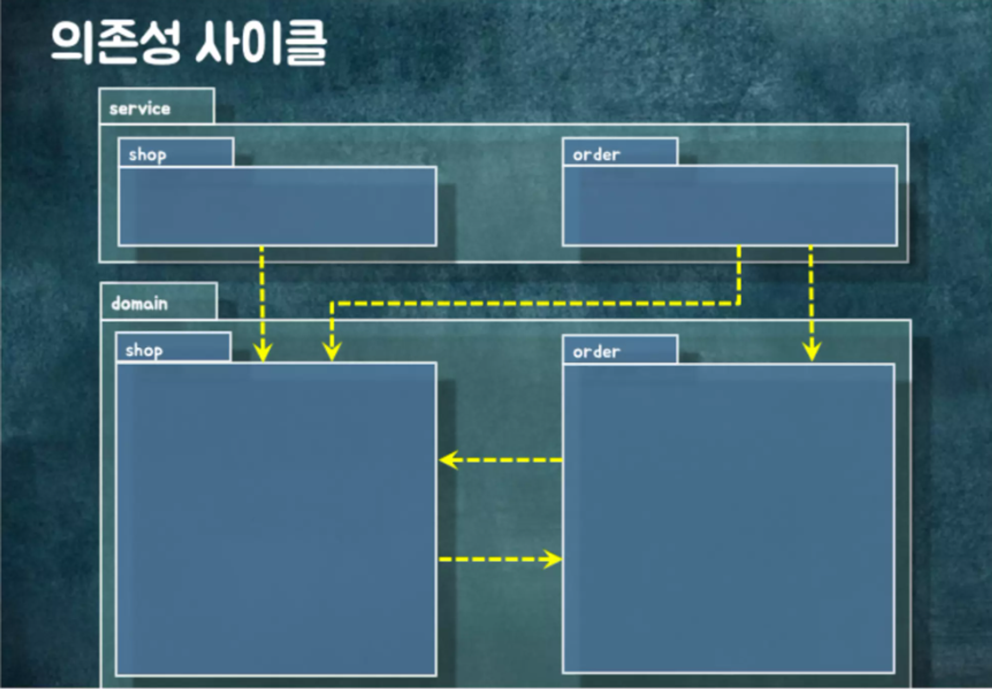 → shop๊ณผ order์์ ์ฌ์ดํด์ด ๋ฐ์ํ๋ค.