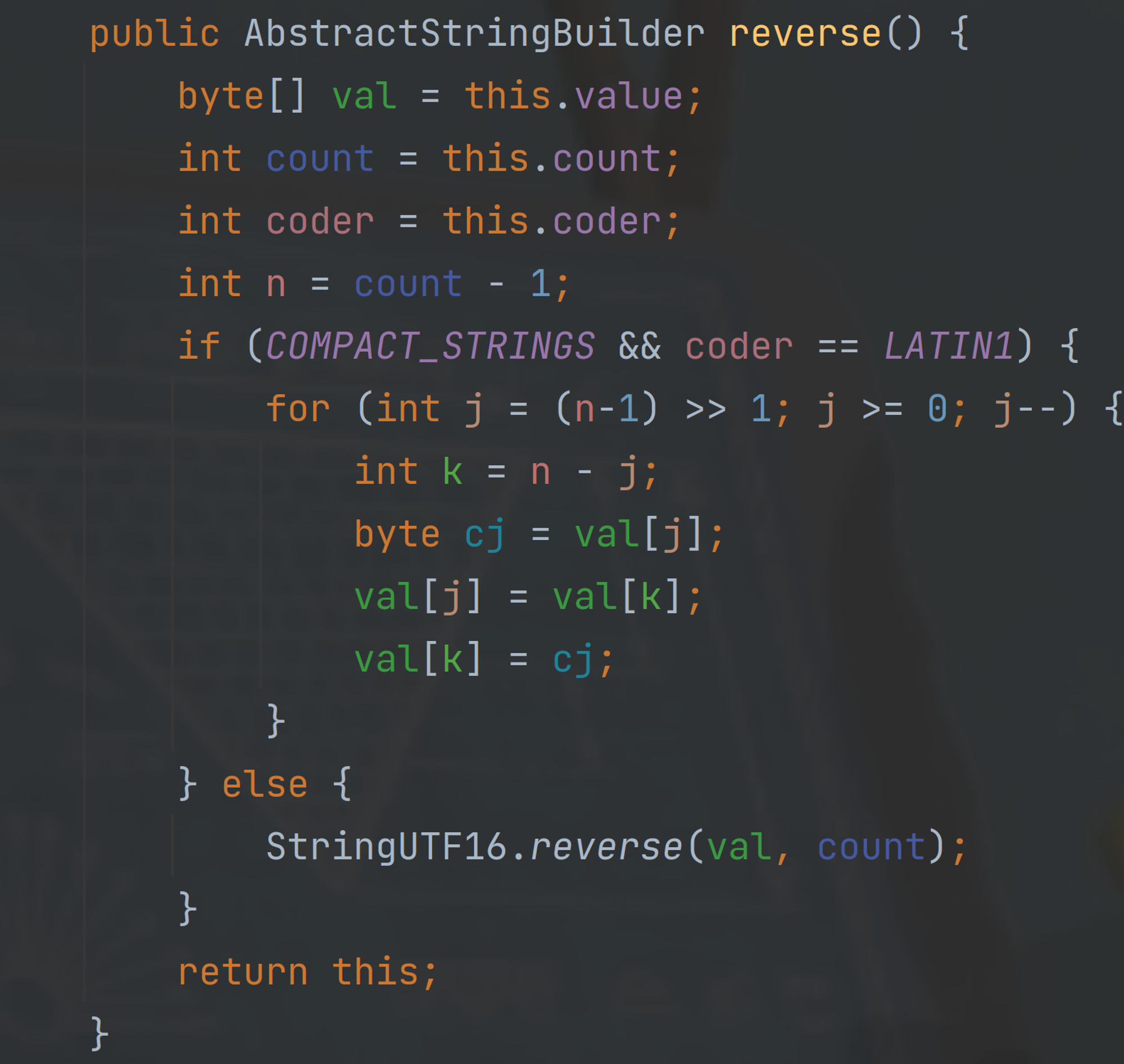 reverse메서드는 AbstractStringBuilder에서 구현되었다.